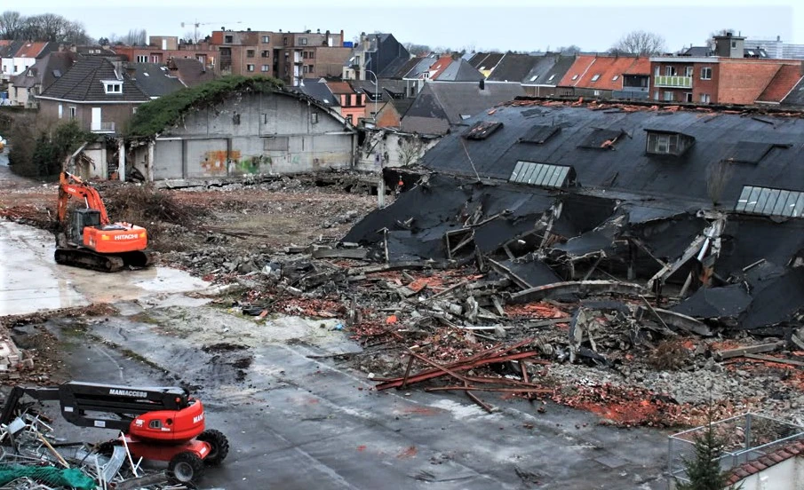 De voormalige carnavalswerkhal moest plaats maken voor een woonzorgcentrum. (Het Nieuwsblad - 26/10/2011)