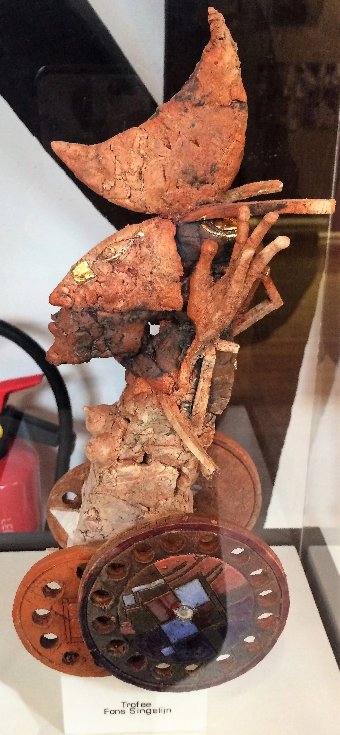 Willy Van Mossevelde krijgt de wisseltrofee Fons Singelijn uit handen van Jo Van den Wijngaerde (Foto: Collectie Sören Delclef - AjoinPedia)